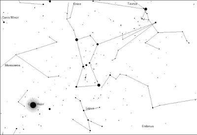 No céu, próximo a Órion, temos o Cão Maior, que era um dos grandes cães de caça de Órion, que o acompanha na caça de uma lebre (Lepus).